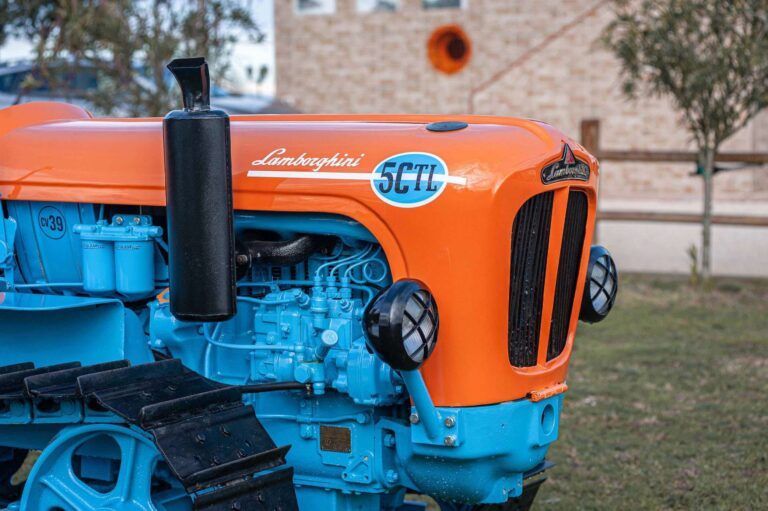 兰博基尼5C TL 可谓是有史以来悬挂兰博基尼徽章最慢的车辆,兰博基尼 5C TL 采用全敞篷设计,车身为桔红和蓝色双拼色涂装,复古式双圆大灯,悬挂采用液压三点悬挂系统,动力上配置了一款40匹马力的风冷 2.2 升3缸柴油发动机,配置四速手档,虽然只有 40匹 马力,但 5C TL 是兰博基尼当年制造出拖曳能力最强大的拖拉机。速度不是它的强项,但全地形的通过能力让其可以行驶在任何道路上。